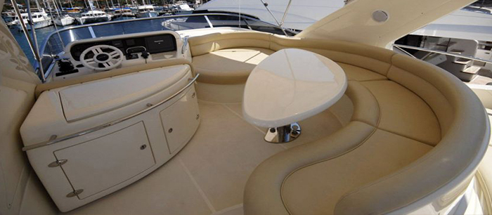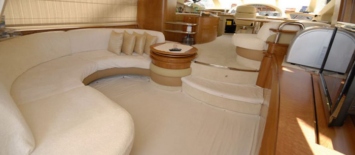 Azimut 55 3 cabins (2 double, 1 twin) + 1 crew cabin, 1 berth 2 bathrooms / WC + in crew cabin 2 x engines Caterpillar 680 hp electronic remote control, shaft drive, Annual engines service done every year Cooling exchanger: service done on 2013 Generator MASE 12 KW Recent engines and generator batteries Fuel tank capacity: 2 000 L 2 battery chargers 24V, 1 charger 12 V Pressurised water and hot water Watermaker 280 l/h of 2009 Converter 24/ 220V Reversible air conditioning in cockpit and cabins Black and grey water tanks Deck shower Swim ladder Hydraulic gangway Opacmare crane 400 KG