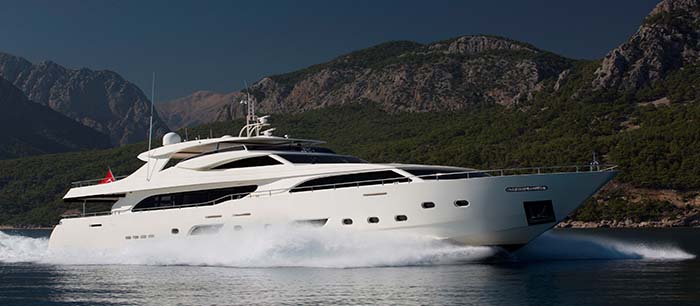 A 37.50 m motor yacht, custom built in 2009 by Mengi-Yay boatyard in Tuzla Istanbul. Panfeliss yacht has a grp coated epoxy laminated Mahogany hull with a grp superstructure with a beam of 7.50 m (23'11"ft) and a 1.50m (4'11"ft) draft and 2 Â teak decks. This custom built yacht is equipped with an ultra-modern zero stabilization system which reduces roll motion effect.
